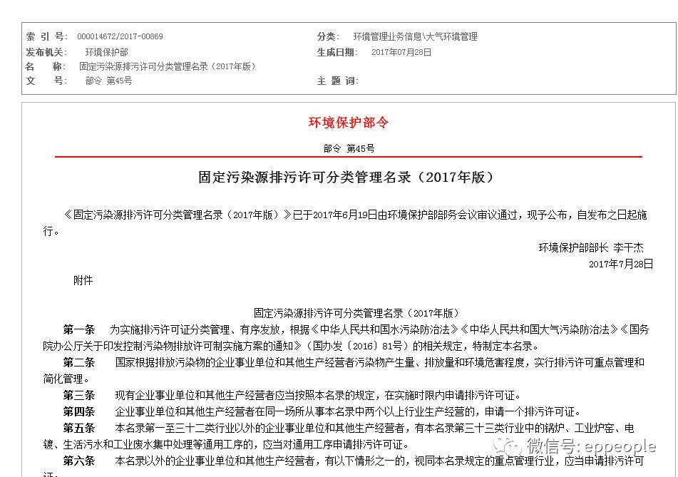 7月28日,环境保护部印发《固定污染源排污许可分类管理名录(2017年版)》(以下简称《排污许可名录》)。这是贯彻落实党中央、国务院决策部署,推动实施排污许可制度实施的重要基础性文件,对进一步完善排污许可制度改革具有重要意义。